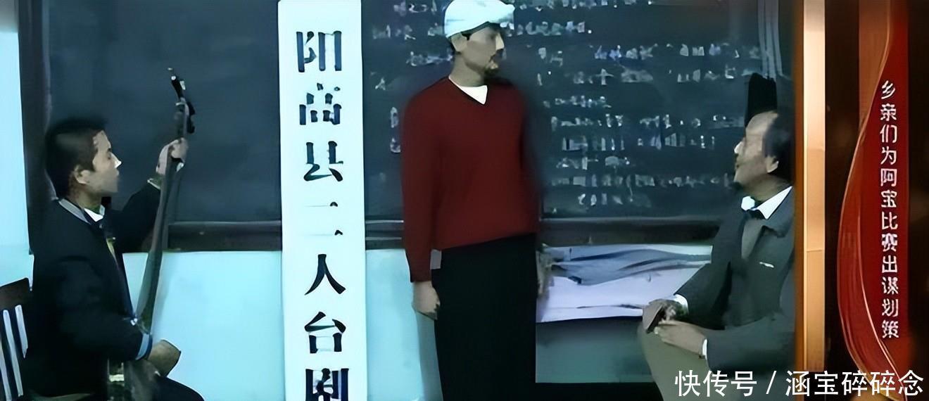 当初,阿宝戴着一顶白羊肚巾,穿着陕北特有的民俗服装登场。