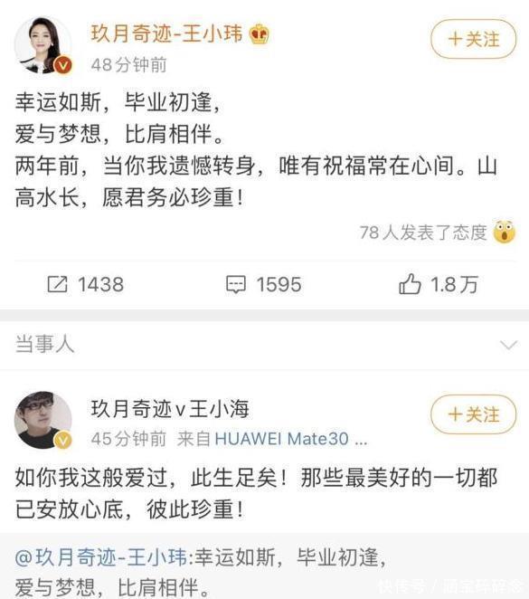 那天,玖月奇迹分别在个人帐号上发文,表示“遗憾转身”“彼此珍重”。