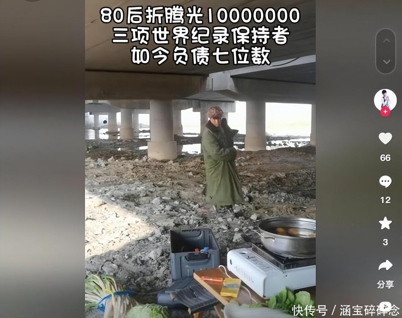 但截图上的画面,却是刘晓东站在一个桥洞下,相当于一个无家可归的流浪汉。
