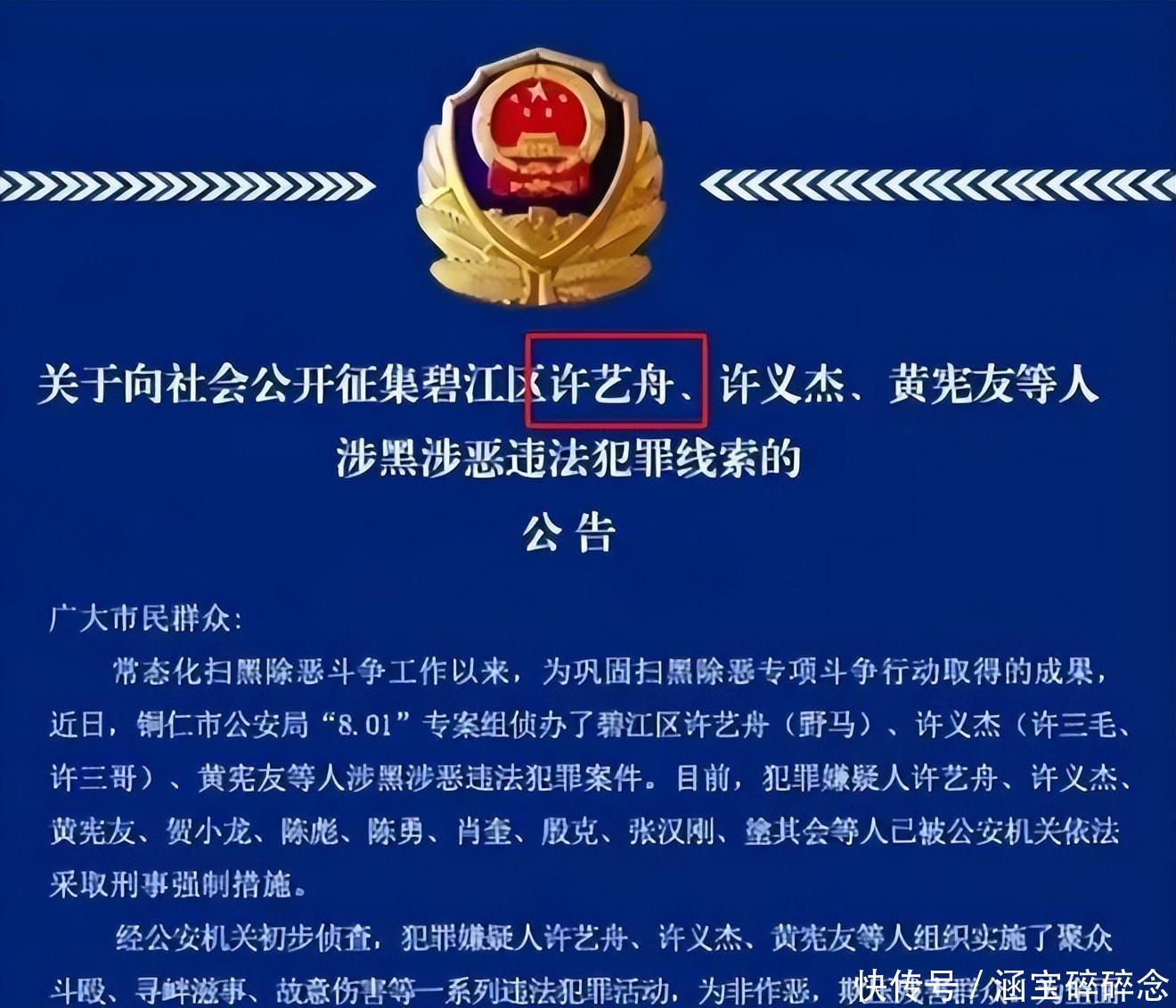 但就在2023年的时候,来自铜仁市公安局的一则公告,披露了许艺舟的另一面。